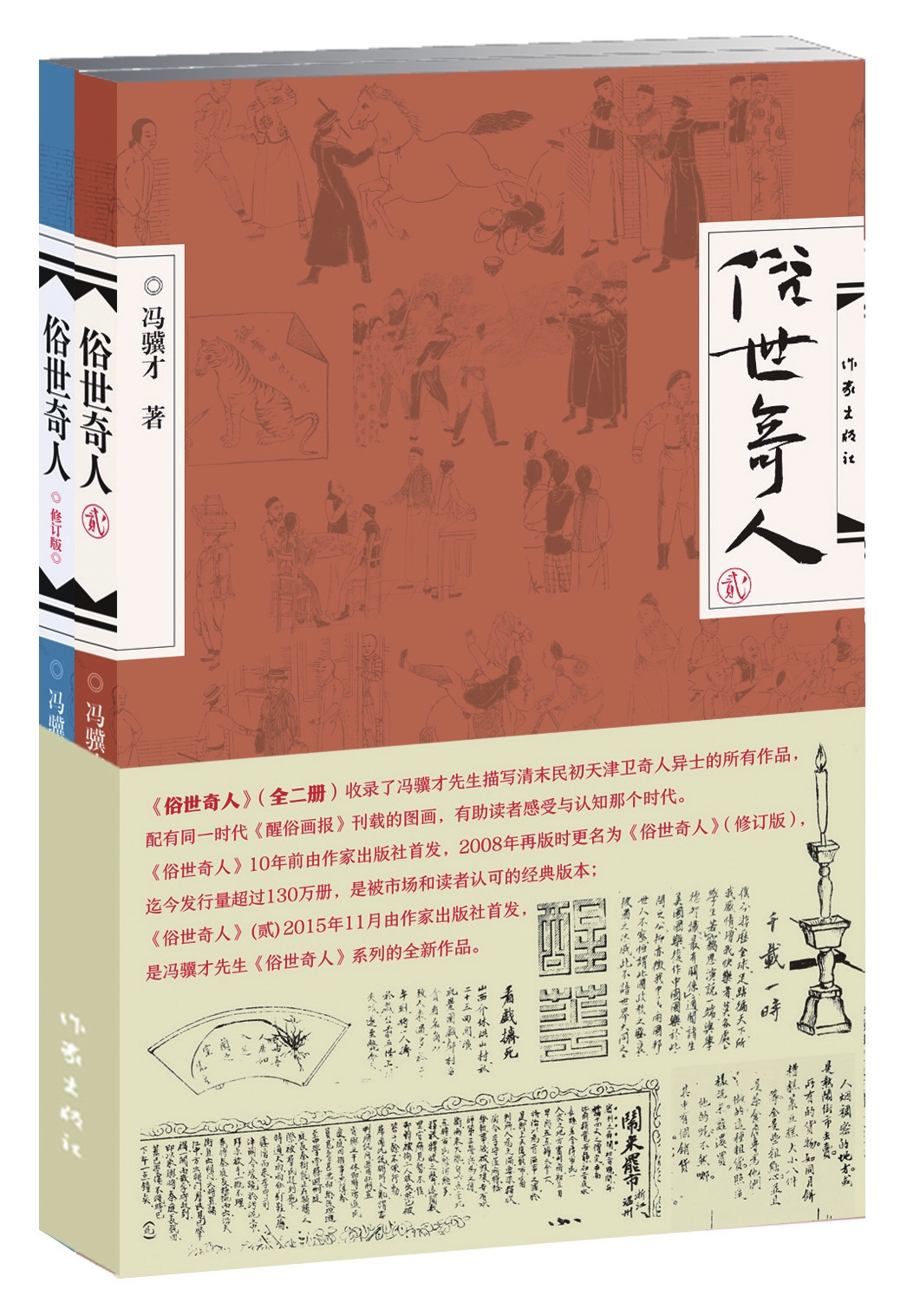 《俗世奇人》(全二册)收录了冯骥才描写清末民初天津卫奇人异士的所有作品。配有同一时代《醒俗画报》刊载的数十幅图画,其内容大至时政要事,小到市井信息,生活气息浓郁,有助于读者感受与认知那个时代。 《俗世奇人》短篇小说集10年前由作家出版社首发,给图书市场和读者奉献了高品质的文化盛宴,精练老到的文字,鲜活灵动的人物刻画,浓郁的地方特色,受到读者的喜爱。2008年再版时更名为《俗世奇人》(修订版),其中的不少篇章被选入中小学生课本,部分地区将其选入中考必读书目。精美典雅的封面设计及插图,与内文相得益彰,逾130万册的发行量更成为图书市场一道靓丽的风景,是被市场和读者认可的经典版本。 《俗世奇人》(贰)2015年11月由作家出版社首发,是冯骥才继《俗世奇人》(修订版)之后又一部描写清末民初天津卫奇人异士的全新作品,是《俗世奇人》系列作品的第二部。