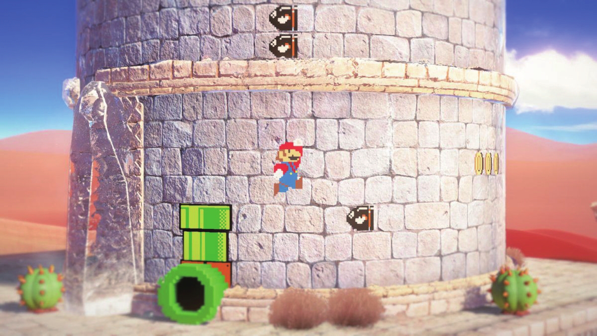 游戏《超级马里奥:奥德赛》中对像素风格的致敬