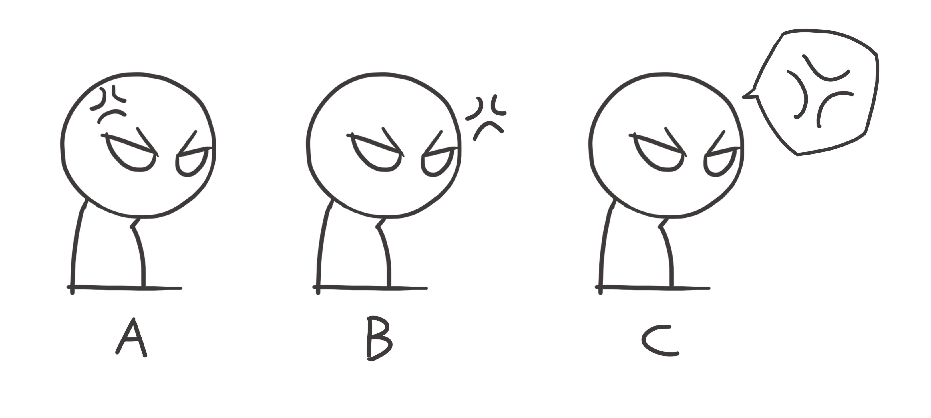 这些表情元素能够跨越上述鸿沟的重要原因在于,它们常常是相当简化的视觉符号,尤其是对二维动画和漫画造型而言。暴起的青筋就像一个只用三笔即可写成的象征文字符号那样简单。所以它们既拥有了被多次复制和反复使用的较大潜能,也易于绘制,更易于识别和记忆。在诸多创作者的一次次使用中,表情元素符号渐渐在动画和漫画表意体系中稳定下来,具备了真正的象征属性。