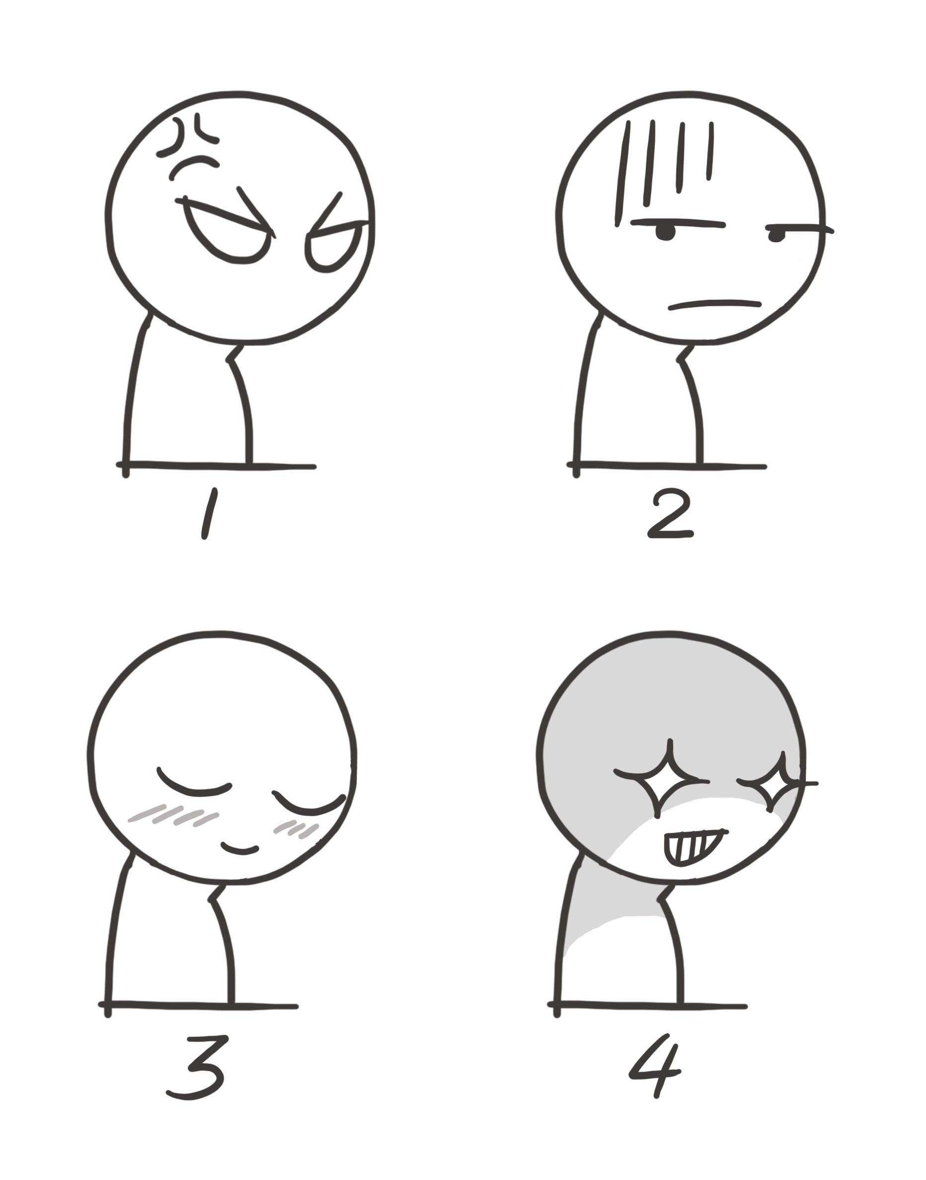 当动画和漫画作品尝试塑造角色的面部表情或对角色情绪进行视觉化的过程中,我们经常可以见到如图1所示的内容,在这里称之为“表情元素”——当角色愤怒生气时,他额头上长出三四根向内弯曲的弧线,看上去如同青筋暴起;当角色尴尬沮丧时,他眼眶上方出现几条竖线,似乎冷汗直冒;当角色害羞脸红时,他脸上会出现几条斜线;当角色阴沉着脸或者密谋诡计时,其面部会出现“自下而上地打光”的效果,额头上部产生一块阴影,可能露出或不露出眼睛……