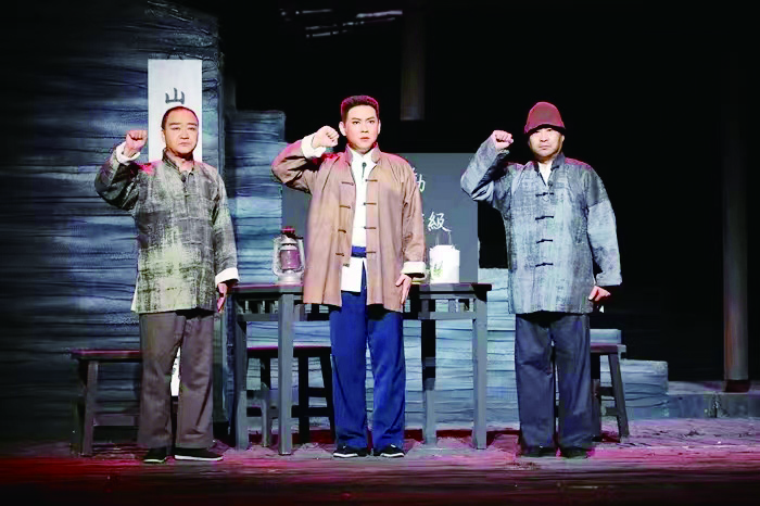 我感觉,首先是一剧之本。编剧的独立思考及创作想象力功不可没(导演孔铁也是该剧一个“不挂名”的编剧,近两年时间打磨剧本的过程始终由他主导,甚至剧中许多细节及大段唱词都是由他完成的)。编剧的不同之处在于其讲述方式,在于对吕剧这种艺术形式的熟悉与认知,在于对历史人物的了解、敬畏与时代背景的熟知。该戏中,主创人员用心思考了两个维度的问题:一是红色表达,二是吕剧表达。