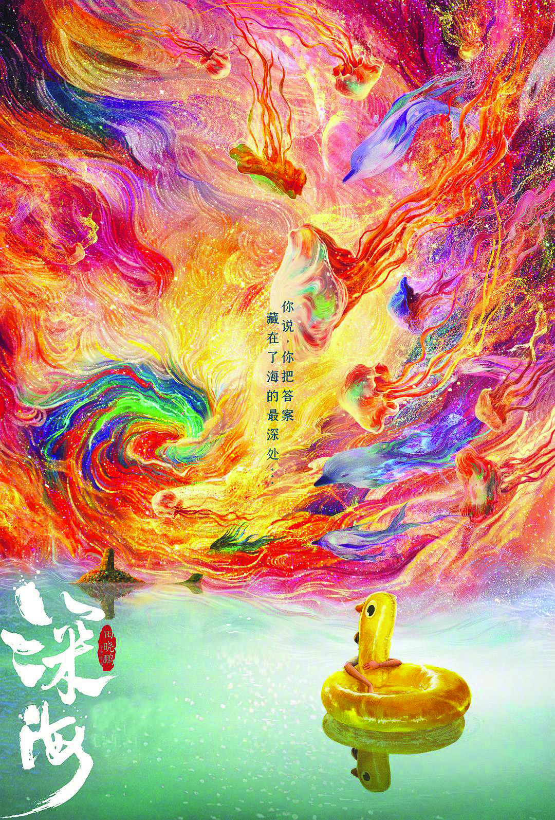 2022年8月,《大圣归来》导演田晓鹏的新作《深海》释出“初遇深海”版系列海报,该系列海报由业内首屈一指的海报设计师黄海操刀,海报上部分,用浓墨重彩的飘逸笔触,构造出梦幻而诡谲的“深海”世界,下部分则是偏重写实,描绘了宁静海面上,女孩的手抱着漂浮在湖面的救生圈。海面与海底的倒置、色彩、画风、虚实的强烈对比,将主人公的历险勾画得充满悬念。海报一经发布迅速引发关注,各界对电影的好奇与期待也被再次拔高。电影海报作为电影宣传的重要载体,承担着凝练电影故事,突出电影人物,表现电影主旨,宣传电影阵容、视效等功能,而与此同时,电影海报在色彩、图形、文字的构建下成为独立的文化产品。近年来,我国电影海报设计迎来中兴,黄海、赵力、张渔等海报设计师崛起的同时,优秀的电影海报作品也层出不穷,而当我们仔细分析近年来的优秀电影海报作品,会发现,中国传统图形已成为近年来电影海报设计中不可或缺的元素。