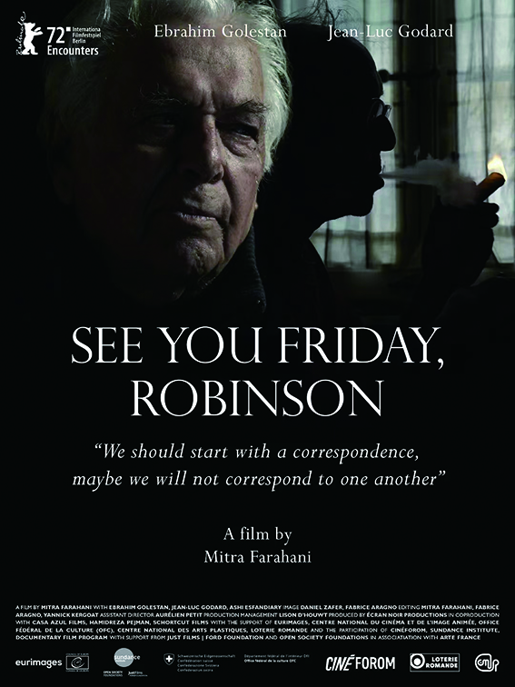 如果说在2022年初有幸在奥德翁剧院(Odéon Theatre)看到了伊莎贝尔·于佩尔(Isabelle Huppert)主演的戏剧《樱桃园》(La Cerisaie),在圣三会教士剧院(Théâtre des Mathurins)看到法布莱斯·鲁奇尼(Fabrice Luchini)的演出《拉封丹和封禁》(La Fontaine et le Confinement)已经足够激动人心,那么2022年底,法国导演(Benoit Jacquot)更是将镜头直接对准这两位法国重量级艺术家,记录了2021年夏天他们在阿维尼翁戏剧节的表演日常。此外,米特拉·法拉哈尼(Mitra Farahani)执导的《星期五见,鲁滨逊先生》(À vendredi, Robinson)记录了伊朗导演艾布拉希姆·格勒斯坦(Ebrahim Golestan)和法国导演戈达尔之间与电影有关的邂逅,两位电影界大师每星期五进行邮件通信,共持续29周,影片摘得第72届柏林国际电影节遇见单元评委特别奖。