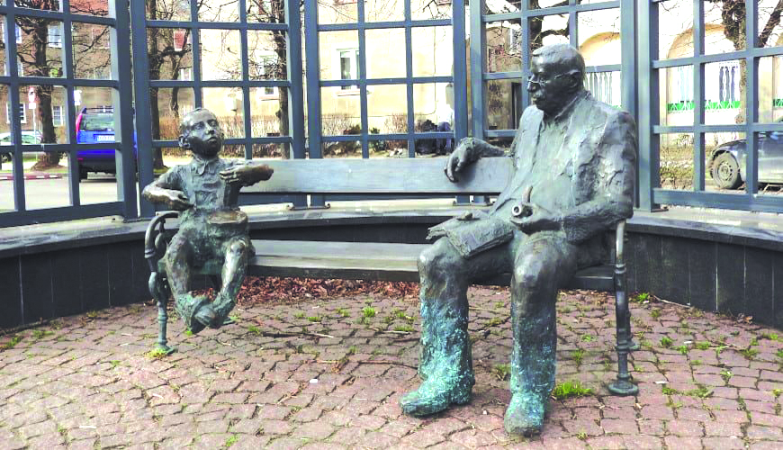 今天,当我们漫步在弗热什奇街区的韦比茨基广场,定会被一个雕塑吸引目光。那是一张青铜椅子,格拉斯和奥斯卡·马策拉特的雕像就坐在上面。格拉斯拿着从不离手的烟斗,腿上放着一本书,书上爬着作品中提到的蜗牛和蟾蜍;而奥斯卡,则抱着与他形影不离的铁皮鼓。