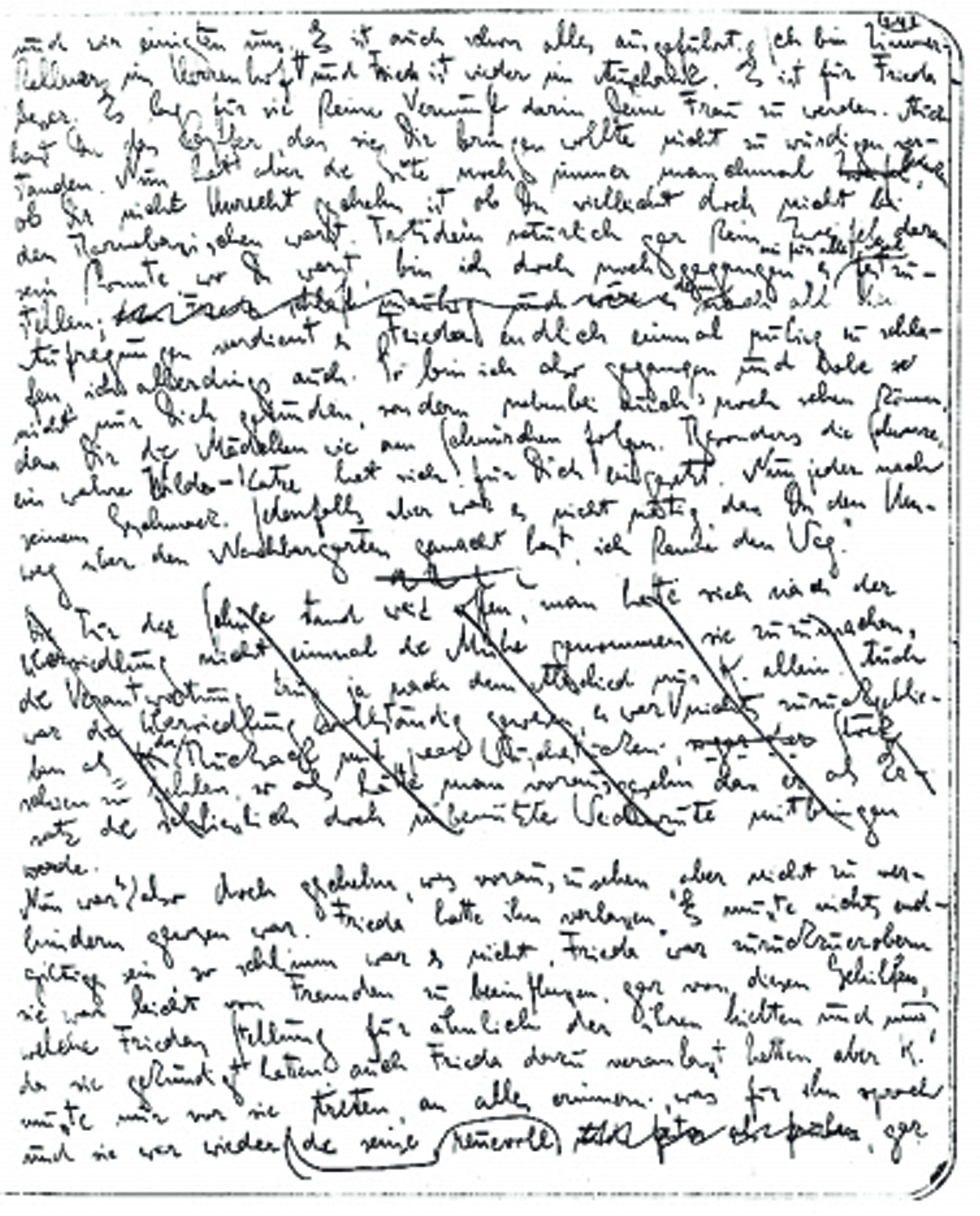 4年后一天,已和菲利斯订婚、分手又第二次订婚的卡夫卡,夜里突然咯血不止,确诊肺结核后,卡夫卡再次写信给她剖析自己:“你知道,两个我一直斗争很激烈,两个中较好的一个属于你……你是我的人类法庭。在我之中斗争的那两个,一个好,一个坏,或者更确切地说,我是他们斗争后剩下的那一点饱受折磨的残余。尽管节节败退,我最后还是相信,最不可能的事情终究会到来(最可能的是:永恒的斗争),而这些年来变得凄惨、卑劣的我,终于可以拥有你了。”(1917.9.30)