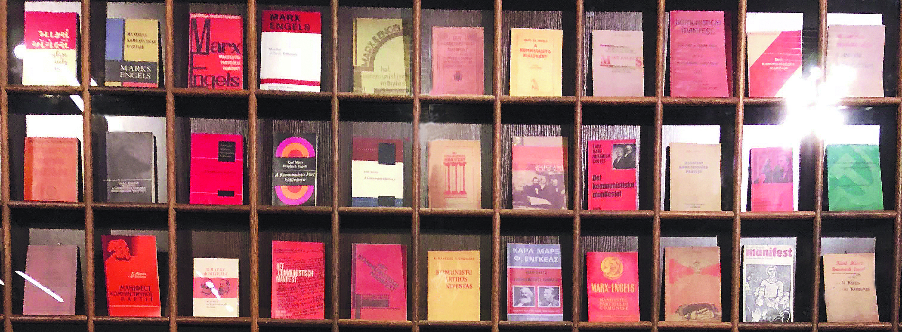 《共产党宣言》全世界不同版本(“真理的力量——纪念马克思诞辰200周年主题展览”的“《共产党宣言》墙”局部)