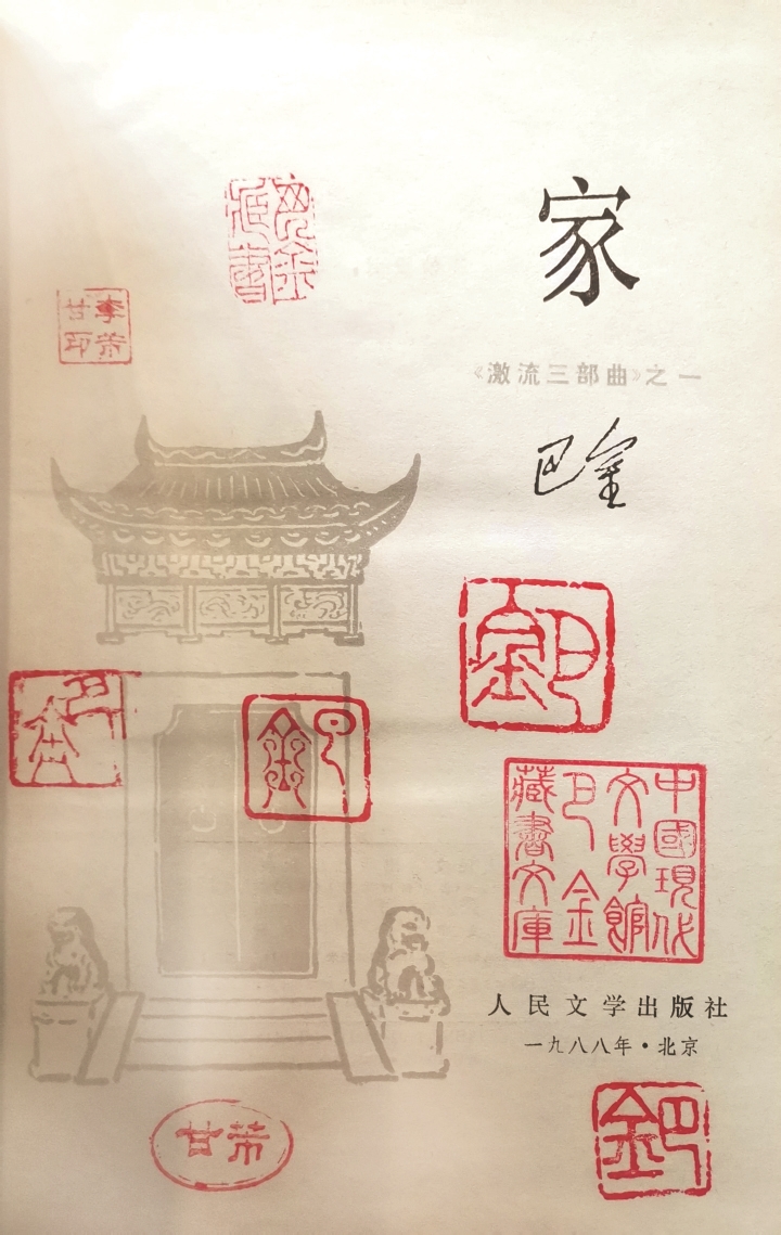 1988年人民文学出版社《家》(中国现代文学馆巴金藏书文库藏)