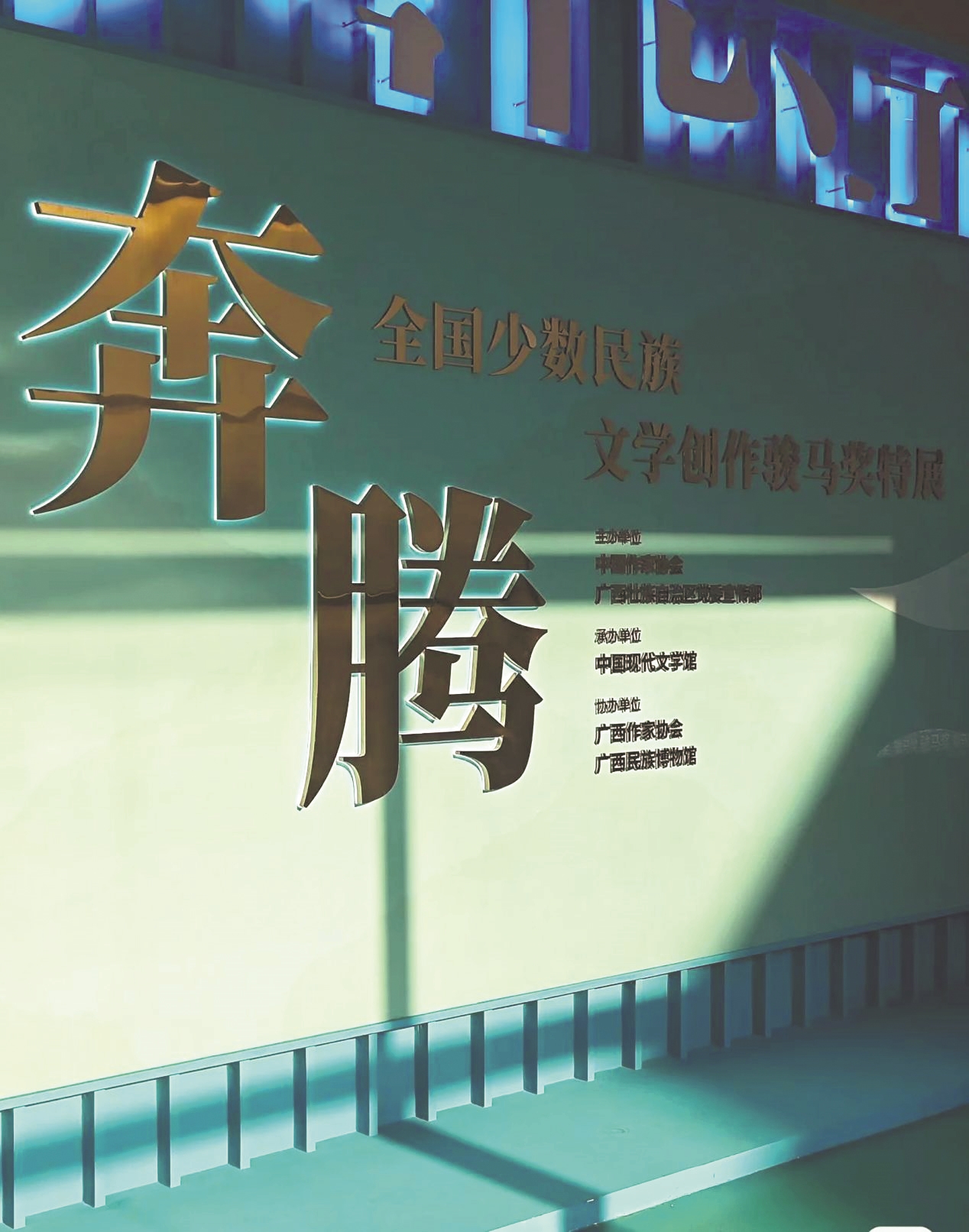 方向既定,迅速行动。特展工作组旋即成立,为后续繁杂工作的统筹协调奠定坚实的组织基础。展览的举办离不开广西壮族自治区党委宣传部和广西作家协会的鼎力支持。在筹备初期,与广西方面的线上沟通就紧锣密鼓地展开,双方围绕展览大纲草稿、资料需求清单等核心内容进行了深入交流。一个核心共识在沟通中迅速凝聚:这绝非简单的获奖作品罗列,而是要立体呈现民族文学发展的“文化脉络”与其中跃动的“时代精神”,使之成为“铸牢中华民族共同体意识”的一次生动文化实践。而“奔腾”这一主题,形象地概括出民族文学创作生生不息、融入时代大潮的磅礴气势,得到双方的高度认同。