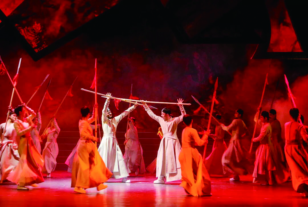 杨文聪(字龙友)的人物塑造也呈现了作品的主题。原作中,杨文聪是在混乱时势中左右逢源、和稀泥的角色,也是推动情节发展的重要人物。新编《桃花扇》基本保持了这一人物的性格和功能,又补充了对人物最终命运的交代:“杨龙友杨公受命于国破之际,驻守苏州。清兵随后攻陷南京,南明文武大臣除逃亡外,大部投降。清将曾派人往苏州劝降龙友,说客却被文聪所杀。杨公孤军奋战,做困兽之斗, 屡挫清军。终因众寡悬殊,兵败被俘,劝降不从,与其子鼎卿同斩,以死殉国。”慷慨之言震撼人心;继而在舞台上虚拟出先后以死殉国的两位将士惺惺相惜,携手离去的场景,进一步烘托和升华了作品坚守民族大义的主题。只不过对杨文聪这个人物的多面性,剧作似乎还可再铺垫细节以增强人物性格和命运的逻辑性。