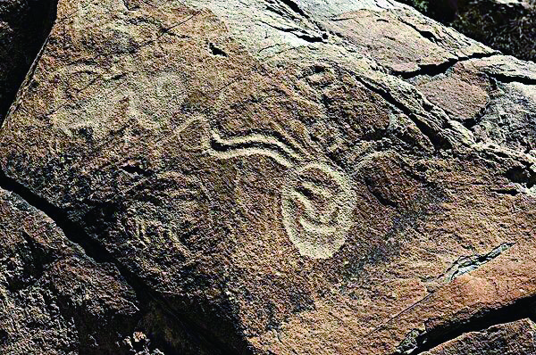 在南北长200多公里的贺兰山腹地,就有20多处遗存岩画。其中最具有代表性的是贺兰口岩画。根据岩画图形和西夏刻记分析,贺兰口岩画是不同时期先后刻制的,大部分是春秋战国时期的北方游牧民族所为,也有其他朝代和西夏时期的画像。刻制方法有凿刻和磨制两种:凿刻痕迹清晰,较浅;磨制是先凿后磨,线条较粗深,凹槽光洁。贺兰口岩画的题材、内容与表现手法都十分广泛,富有想象力,给人一种真实、亲切、肃穆和纯真的感受。众多岩画为我们了解和研究古代游牧民族的历史、文化、经济状况、风土人情提供了极为珍贵的文物资料,堪称是一处珍贵的民族艺术画廊。用手摸一摸先祖留下的纹路,那一块块石头静默在那里,仿佛在无言地展示着千年的故事。我们说,当一块粗粝的石头被刻上印迹之后,意义便会产生,历史就此开始。