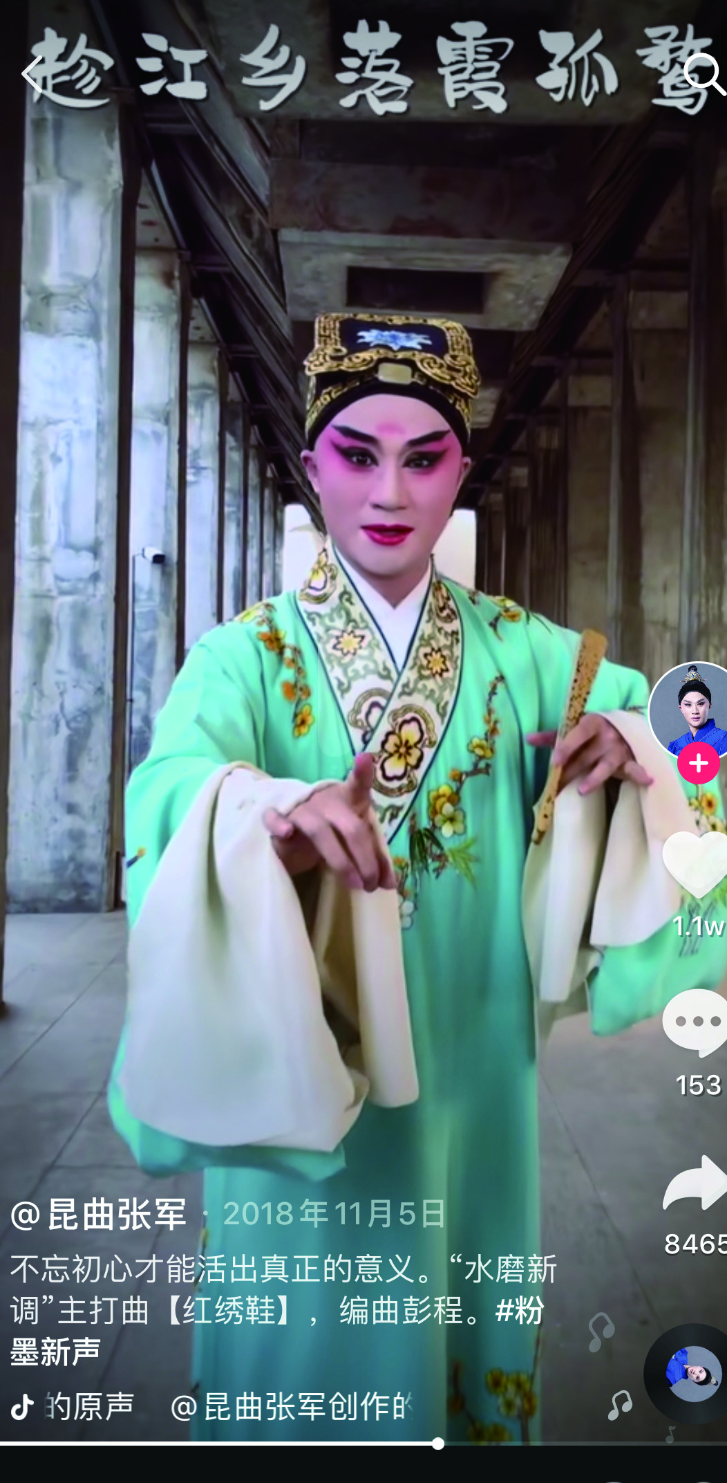 抖音的戏曲短视频聚焦昆曲、京剧、豫剧、黄梅戏等在群众中有广泛影响的大剧种,普及剧种知识,引导戏曲欣赏,这对于戏曲吸引观众和传承都具有重要意义。