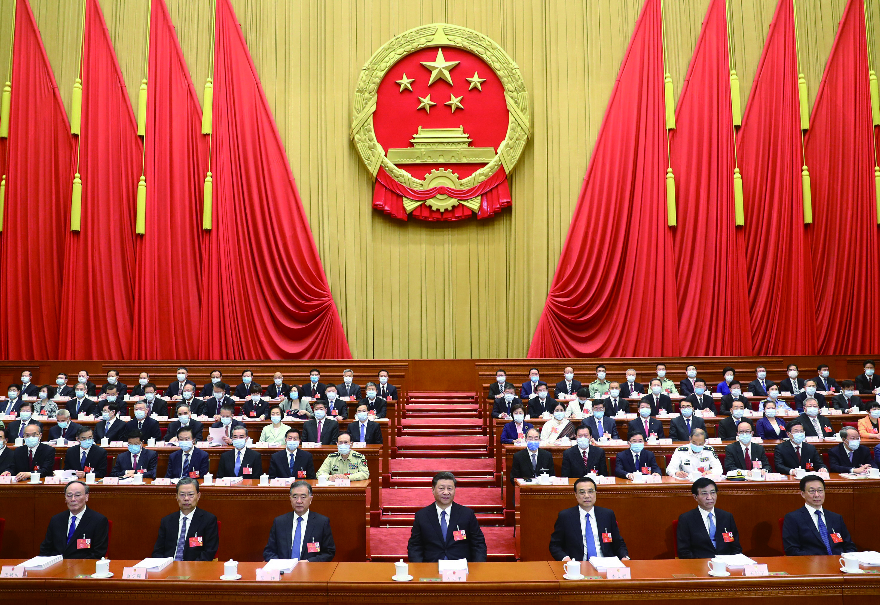 习近平、李克强、汪洋、王沪宁、赵乐际、韩正、王岐山和大会主席团成员在主席台就座。
