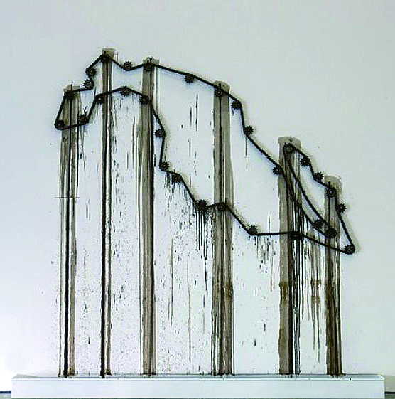 当代艺术需要“入戏”的观众。这件作品,从我4年前看见它、偶然想到它,它就扎了根、在记忆的暗房一点点长大,又在当下语境破土而出,一下子显影出来。它自然而然地浮出幽暗的水面,适当的语境和我的意识结构给了它浮力和位置,刚好镶嵌上当下景象的某个部分,不那么严丝合缝,却很真实。2016年今日美术馆的“第三届今日文献展”,有100多件国内外的作品,我只记住了这一件:锈褐色的、缓慢转动的链条构成闭合的线条轮廓,描出墨西哥地图的形状,从转动的链条上,特别是转角齿轮咬合的地方,一条条浓稠凝滞的机油,不断滴在白墙上,它又黑又红又脏,像从一张大嘴的牙缝里流出来……我感到震惊,随机在心里给它命名“墨西哥”。我想到了什么?想到了大航海、殖民史、种族屠杀、对土著女性的普遍强暴,想到墨西哥人的面孔和血缘,想到白人种族主义对美洲拉丁裔的“一滴血原则”……