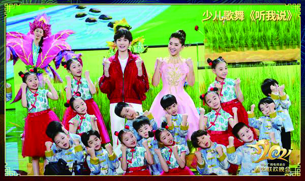 像往年一样,2021年的春晚中,歌唱类节目依旧占据了整场晚会的半壁江山。这些形式多元、风格各异的作品,借助多维立体舞台的全方位呈现,以及5G高清、AR、XR等新技术的运用,将建党百年、全面建成小康社会、脱贫攻坚、中国梦、疫情防控等鲜明时代主题贯穿其间,在“欢乐吉祥、喜气洋洋”的新春氛围中为全球华人奉上情意浓浓、祝福满满的文化盛宴,为春晚这个中国最具影响力的文化IP注入了新的时代内涵。
