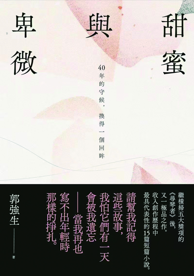郭强生中篇小说《寻琴记》写音乐、人生之爱与孤独。该作获得2021第八届联合报文学大奖。2021年初结集小说精选《甜蜜与卑微》,人生私散文《何不认真来悲伤》《我将前往的远方》《来不及美好》揭示家族伤痕,捭阖生命渊薮。郭强生跨越小说、散文、评论、戏剧、跨界展演等多领域,学者张瑞芬形容他是“当今台湾文坛最具爆发力与续航力的中生代作家”。