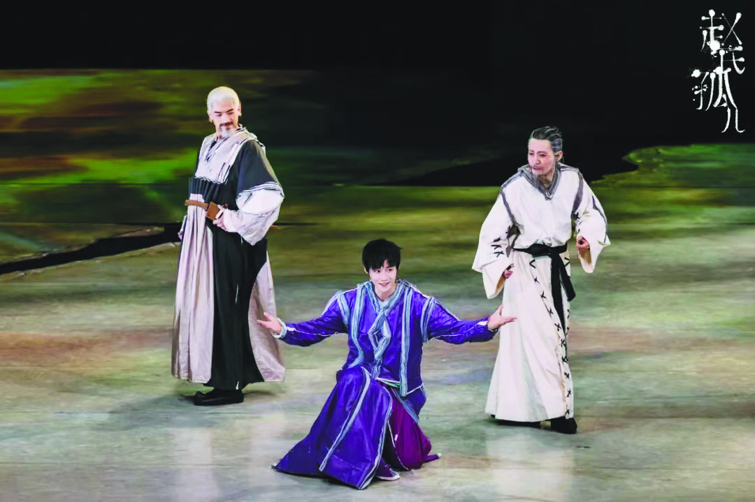 此外,剧中一些人物行为动机的合理性也需要交代得更加清楚以增强说服力,这是让人物形象立体丰满的前提之一。在这个方面,该剧尚存在一些不足和缺憾。比如,赵孤杀死养父屠岸贾的动机就不够充分,或者说,不足以让人信服。在古代的演绎中,传统抽象的伦理大义是促成赵孤弑养父的原因,但在现代,就必须考虑到人物的内心以及人物行为的合理性。尽管与传统京剧、元杂剧改编版相比,音乐剧《赵氏孤儿》设置了赵孤成年后出游,知道了百姓对屠岸贾的怨愤,安排了赵孤与生母见面,证实了程婴的话。但是,这些戏剧事件在实际的舞台中所做的铺垫和演绎尚有不足,赵孤的内心是如何把屠岸贾从朝夕相处的“养父”和人神共愤的“奸臣”相脱离的?他在杀死屠岸贾之前内心的纠结、挣扎和进退失据是否可以通过更多的音乐、台词、表演手段来展现?这些都是可以进一步思考的。