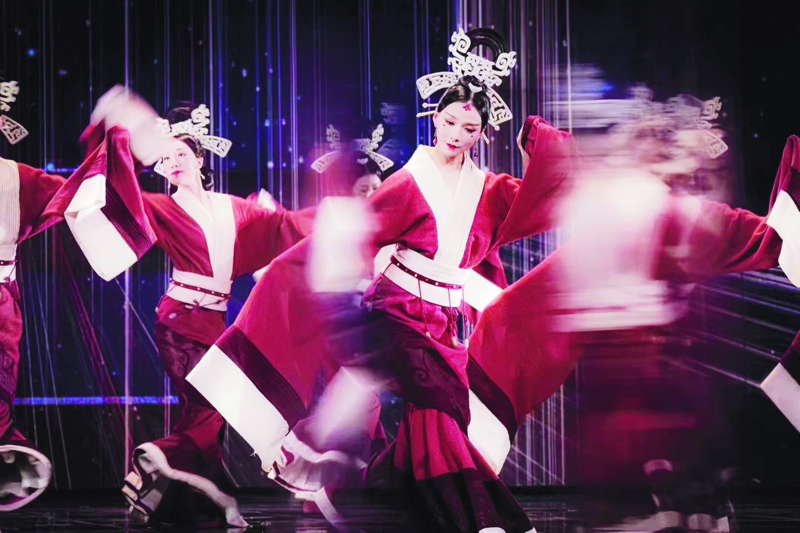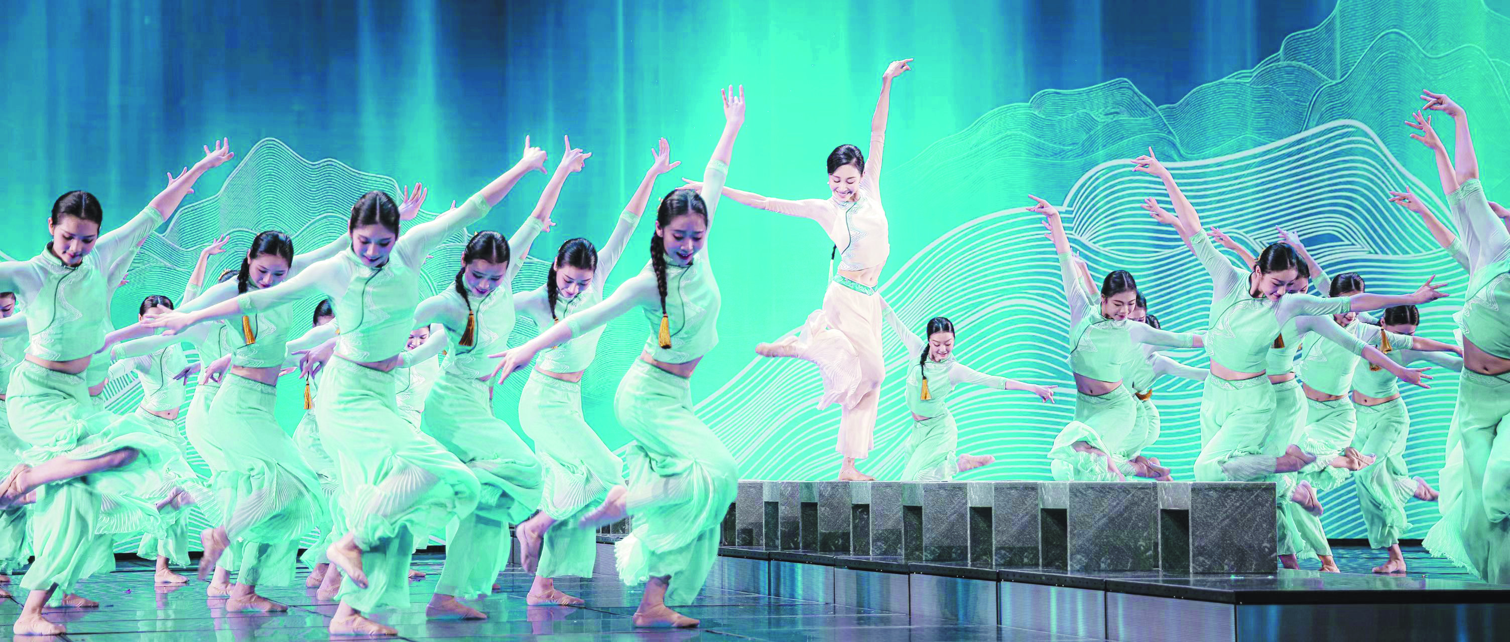 从这个意义来说,《满庭芳·国色》堪称缩影。舞蹈艺术本身一向强调直观的外在美,一个舞蹈创作中屡见不鲜的误区就是只用肢体动作本身的美感,来代替对主题的挖掘。《满庭芳·国色》旨在以数种古典韵味浓郁的色彩来探寻国人的精神家园,这一主题的抽象意味是显而易见的,似乎更容易陷入这一误区。实际上,《满庭芳·国色》通过舞者和某种特定色彩的“对舞”,形成了“双主角”的舞台格局。舞者既是这一富有东方古国美学意味的色彩的人格化,自身又有着鲜活灵动的生命质感。色彩在水中的沉淀漂浮和舞蹈动作之间呈现出强烈的互文效果。于是,舞蹈技巧的难度和美感与作品主题的历史感、深刻性融合起来,带给观众极富哲理性的审美体验。这部作品在舞蹈艺术的思想性、抽象观念的拟人化等方面所达到的艺术高度,是突破性的。作为舞剧《五星出东方》选段的《锦绣》,取材于汉代织锦文物图案,这一文物发现于新疆和田的尼雅遗址,该作品就旨在彰显这一考古发现的历史价值。创作者对这一主题进行了故事化处理,给厚重深邃的主题赋予了流畅的叙事性肌理。《碇步桥》则从古代迈入现实,将江南水乡女子的日常搬上舞台,极富生活情趣。南音是我国的世界级非物质文化遗产,《百鸟归巢》又是南音中最重要、最知名的谱目之一。本届春晚上歌曲《百鸟归巢》的舞蹈部分,以当代舞蹈的技法为手段,使得原本有着浓郁地域特点的音乐表演变得生动鲜活,观众得以借助舞蹈场景所形成的画面感,更真切地领略到有着悠久历史的南音艺术的独特魅力。