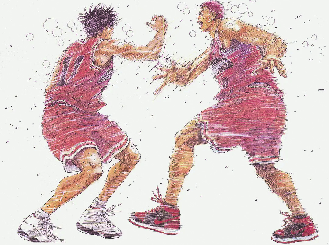 《灌篮高手》是日本20世纪90年代出版的体育漫画,后改编为101集的长篇动画剧集,随后被引入中国。作品以日本神奈川县湘北高中篮球队(以下简称湘北队)队员为主人公,以对篮球一窍不通的高一学生樱木花道的视角展开,讲述了湘北队的队员们为了实现全国高中篮球联赛上“称霸全国”的梦想而努力奋斗的故事。作品以充满趣味的校园生活、紧张刺激的比赛场景、性格各异的人物形象、专业扎实的篮球素养赢得了青少年的喜爱。动画剧集在1996年结束,当时并没有制作湘北队参加全国联赛的部分,让不少观众引以为憾。时隔27年,2023年4月,《灌篮高手》电影版在国内院线上映,讲述的正是湘北队在全国大赛中战胜蝉联全国联赛冠军的山王工业高中篮球队(以下简称山王队)的故事。