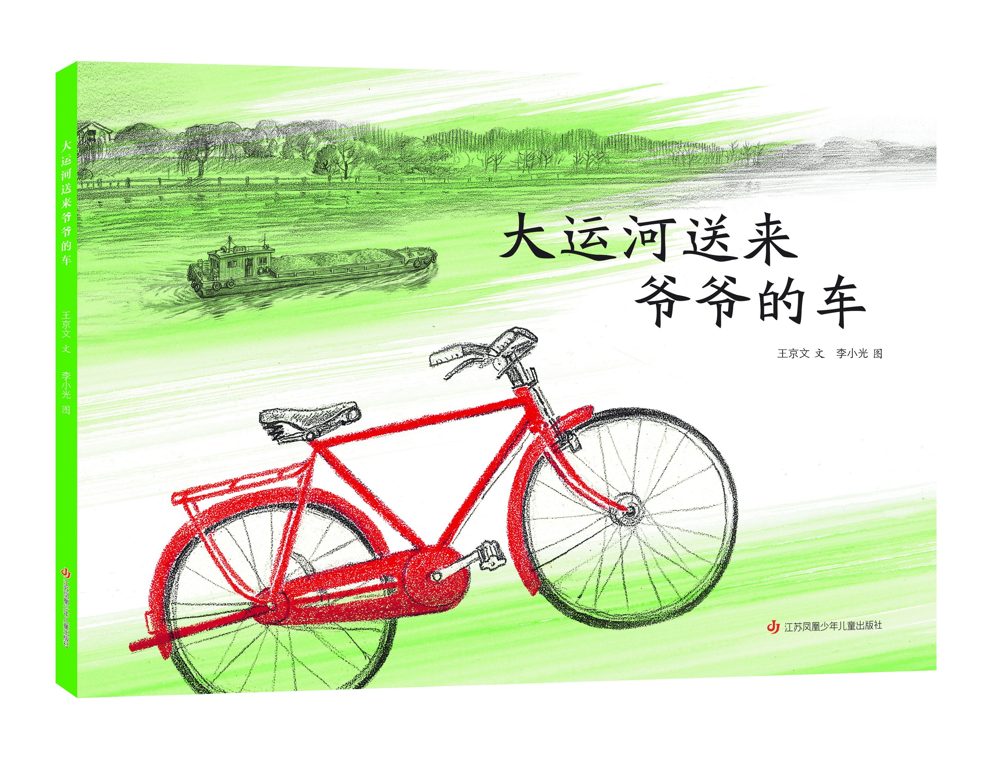 《大运河送来爷爷的车》(王京文文、李小光图)通过对祖孙传递自行车这件小事切入叙述,以京杭大运河所流经的沧州、台儿庄、徐州、扬州、苏州、湖州等8个城镇为主线,选取不同地区及河段的自然、建筑、民俗等生态人文场景加以呈现,让小读者们看到祖国生态文明建设处于时代画卷中的动人缩影。