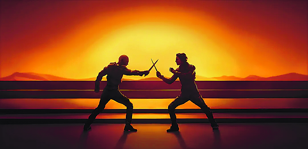 在维纶纽瓦的科幻作品改编序列中,2016年的《降临》、2017年的《银翼杀手2049》,直到最近的《沙丘》及其续作,都有大致相似的画面追求。首先是笼罩在全片叙事之上的超大场面塑造,然后是一连串包含人物间暴力冲突的动作画面,与之相关的两个技巧分别是,突出演员明星的独特个体魅力以符合大众审美需求,将高科技想象与古风时代的异族风情相连接。通过《沙丘2》的实际观看,或许可以发现上述两种方式都很难再成为影片行销全球的制胜法宝。