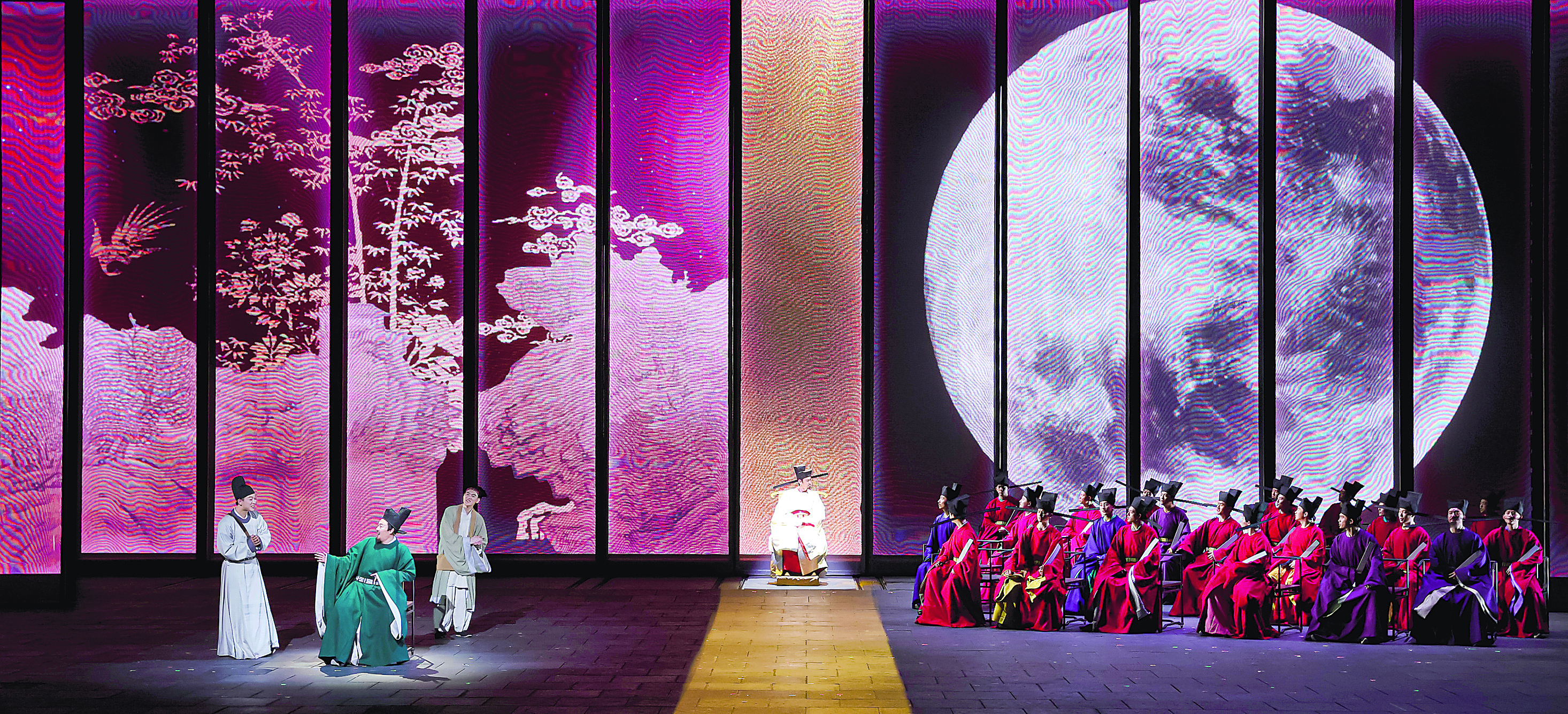 创造这种喜正剧形象,其实可以视为田沁鑫导演本人多年的自觉的戏剧美学追求的一个新近收获。从《北京法源寺》(2015)中刻画的戊戌变法时代众多人物以及其他相关创作中,已经可以或多或少地感受到某些戏拟、戏谑特点及其旁观审视效果了。到了《苏堤春晓》,如上美学探索过程中逐渐积累起来的喜剧型元素,终于在此汇聚成为定型的喜正剧风格。这种喜正剧风格的定型,应当可以视为新时代舞台艺术形象塑造中,中国古典文化巨人构型上的一次新的美学突破,有效地给观众带来一种新颖的伟大而可亲乐的苏东坡形象。这种伟大而可亲乐的苏轼美质,恰是历史的苏轼本身所有机地蕴含着的,只不过在当下被真正的会心者发掘出来而已。尽管如此,还是应当说,这种喜正剧形象不可能构成苏轼形象的唯一正宗面孔,而是应当看到,这种形象塑造还应当继续呈现出开放和多元的无止境探索态势。