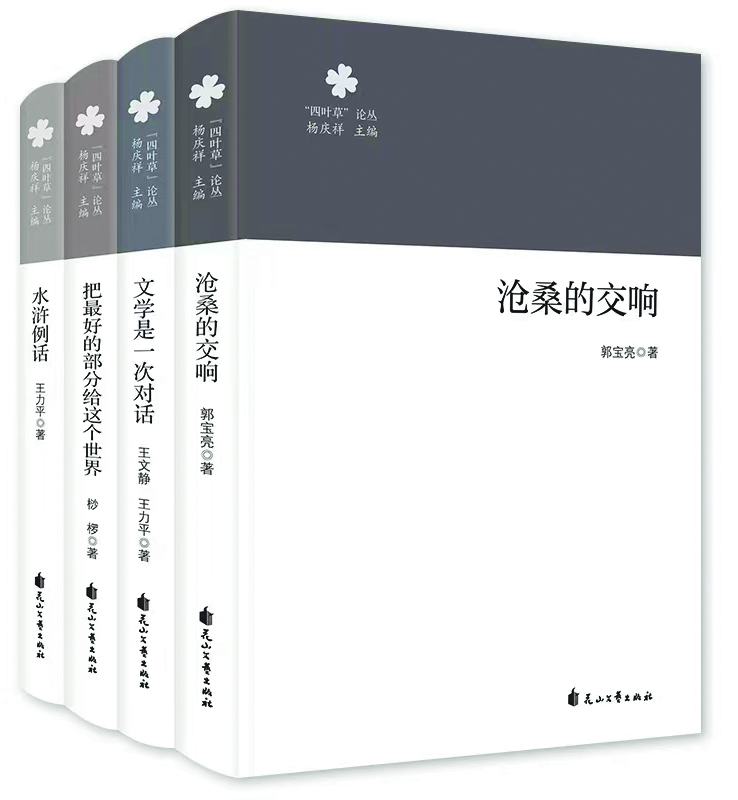 《“四叶草”论丛》由王力平《水浒例话》,郭宝亮《沧桑的交响》,桫椤《把最好的部分给这个世界》,王文静、王力平《文学是一次对话》4部著作组成。这4部著作的评论对象不尽相同,但都聚焦文学经典与文学传统,关注创作现场与文坛生态,以新鲜活泼的话语方式,呈现文学世界的斑斓图景。