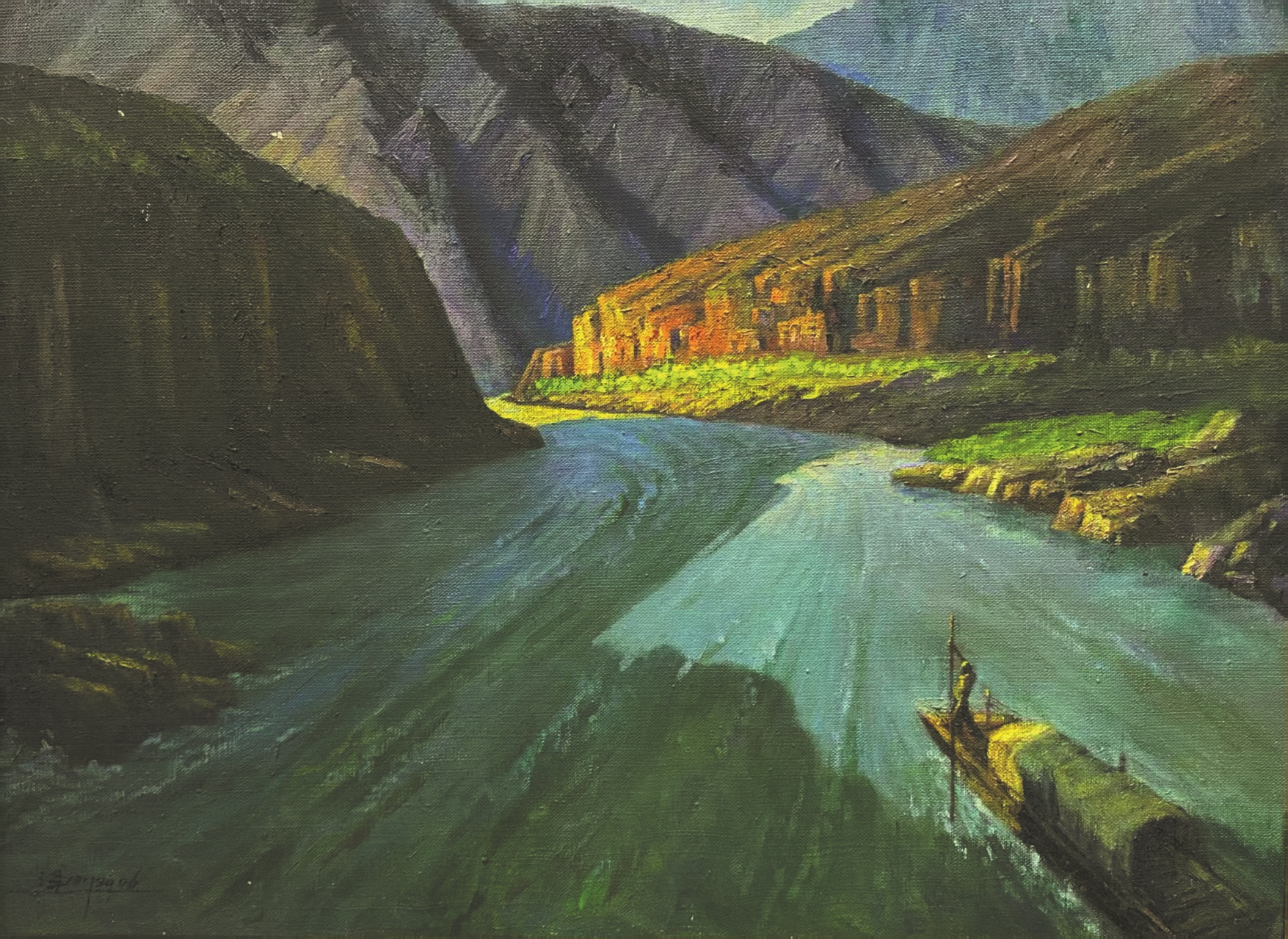 我9岁离开故乡,记得1977年回去,翻过乌蒙山的崇山峻岭后,顺关河而下,一步步靠近故乡时,和关河水一样,我心里泛起波涛,用心记着路旁的一草一木,生怕忘了回故乡的路。翻过礁岩,黄葛树和竹林掩映的屋影楼房出现在我眼前,那袅袅炊烟,让我闻到了家的气息。关河上命悬一线的铁索桥晃晃荡荡,桥上的人仿佛荡着秋千,沙湾头和猪石坝停靠着大大小小的木船,关河上水鸟翻腾,船帆点点,在云雾的抚揉下,房檐屋舍及四周的山峰崖壁,被荡洗得青翠欲滴,犹如潜于水底的隔世风景,又仿佛一个天堂渡口和世外桃源,出奇静,也出奇美。那时的我想,这应该是世上最美的风景了。