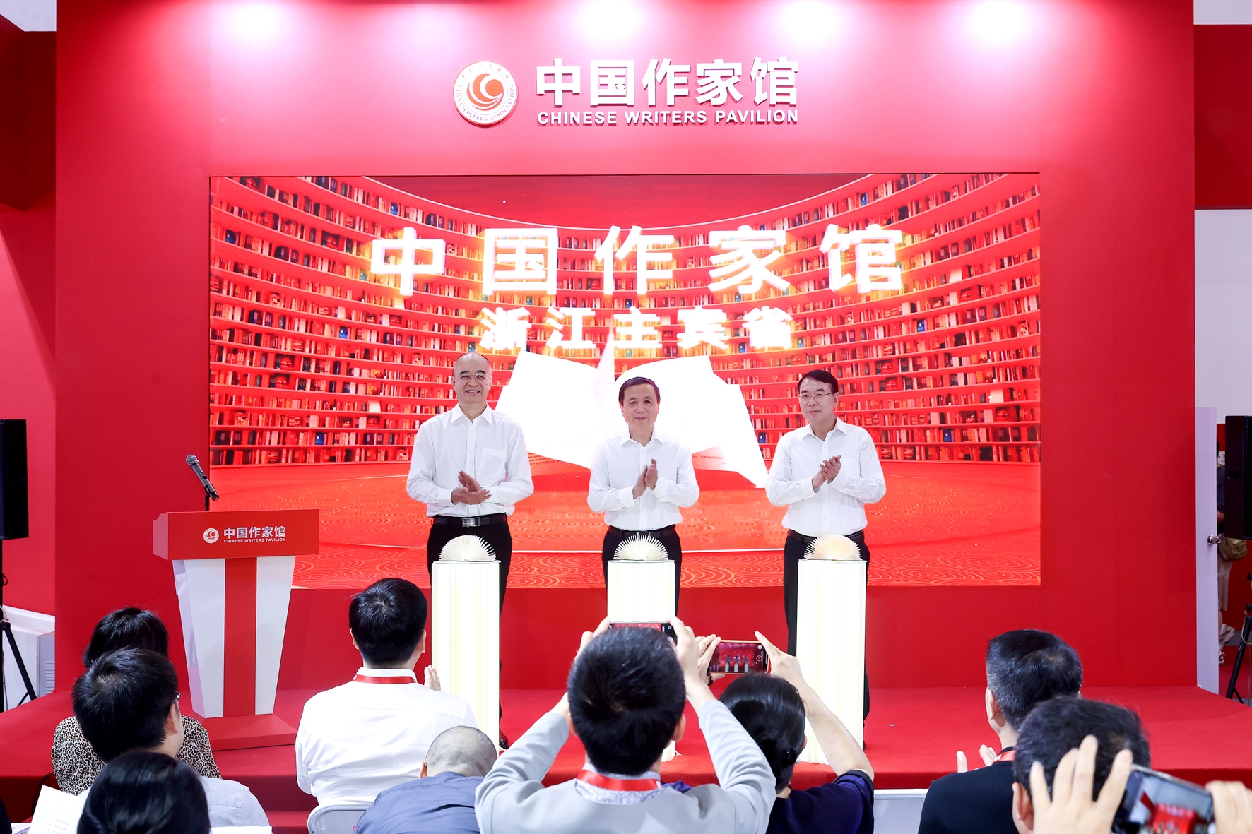 本报北京6月18日电(记者 罗建森) 6月18日,第三十一届北京国际图书博览会开幕当日,由中国作协主办,中国作家出版集团、作家出版社承办的“中国作家馆”在北京国家会议中心隆重开馆。这是中国作家馆在图博会的第15次亮相,由浙江省担任中国作家馆主宾省。中国作协主席、党组书记张宏森,中国作协党组成员、副主席吴义勤,浙江省委常委、宣传部部长赵承出席开馆仪式并为“中国作家馆”开馆。吴义勤、赵承分别代表中国作协、浙江主宾省致辞。开馆仪式由作家出版社社长鲍坚主持。